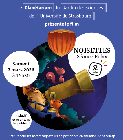 Avec un médiateur scientifique, découvrez les secrets du ciel nocturne puis le film "Noisettes". Ce spectacle s’inscrit dans le dispositif « Relax » : les publics avec ou sans handicap sont accueillis dans une atmosphère accueillante et chaleureuse.